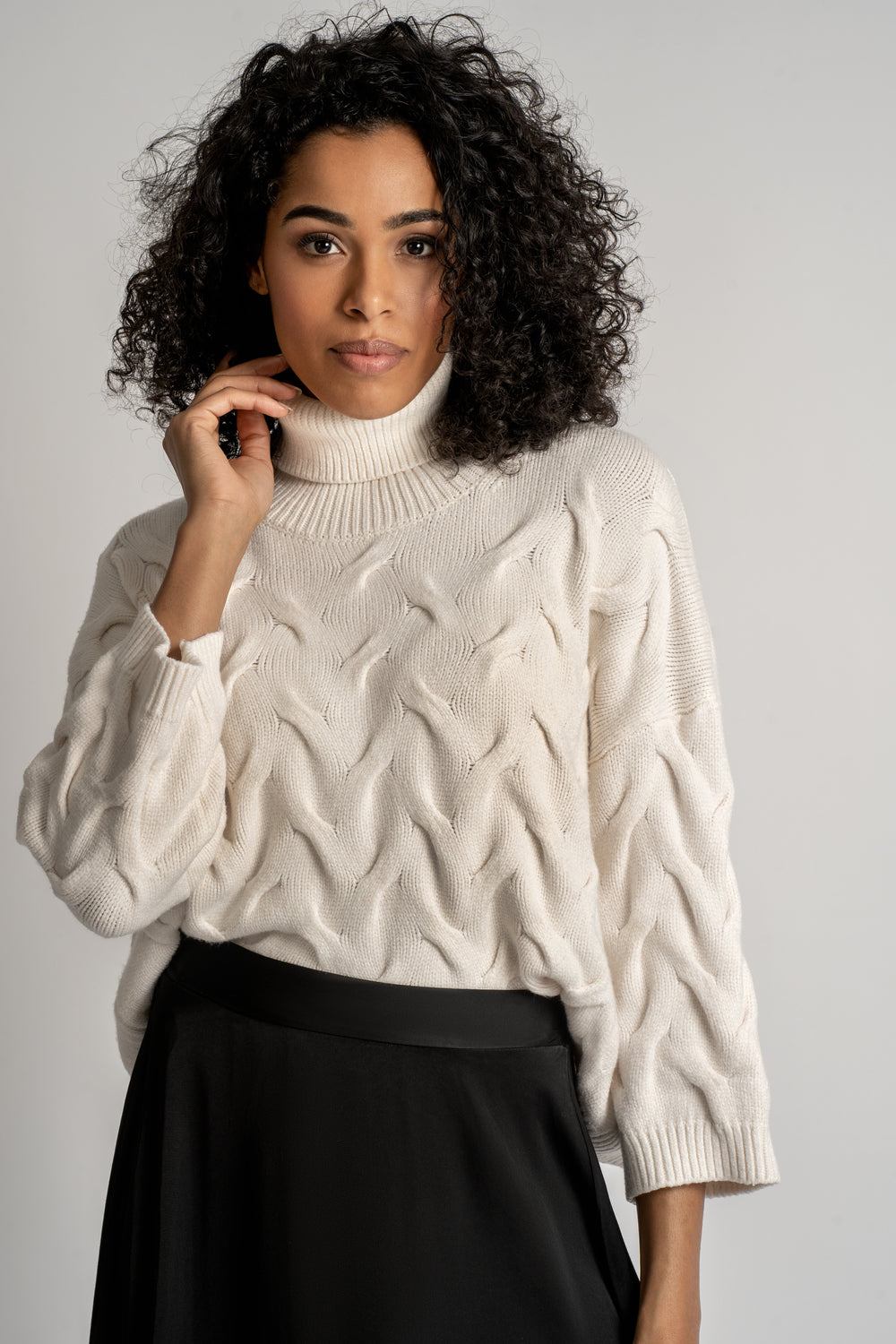 Enveloppez-vous de douceur avec notre col roulé torsadé ! Ce pull chaleureux se distingue par son motif torsadé élégant qui apporte du relief et du caractère à votre tenue. Disponible en quatre coloris intemporels - rose pâle, camel, noir et écru - ce col roulé s'adapte à toutes vos envies et complète harmonieusement votre garde-robe.