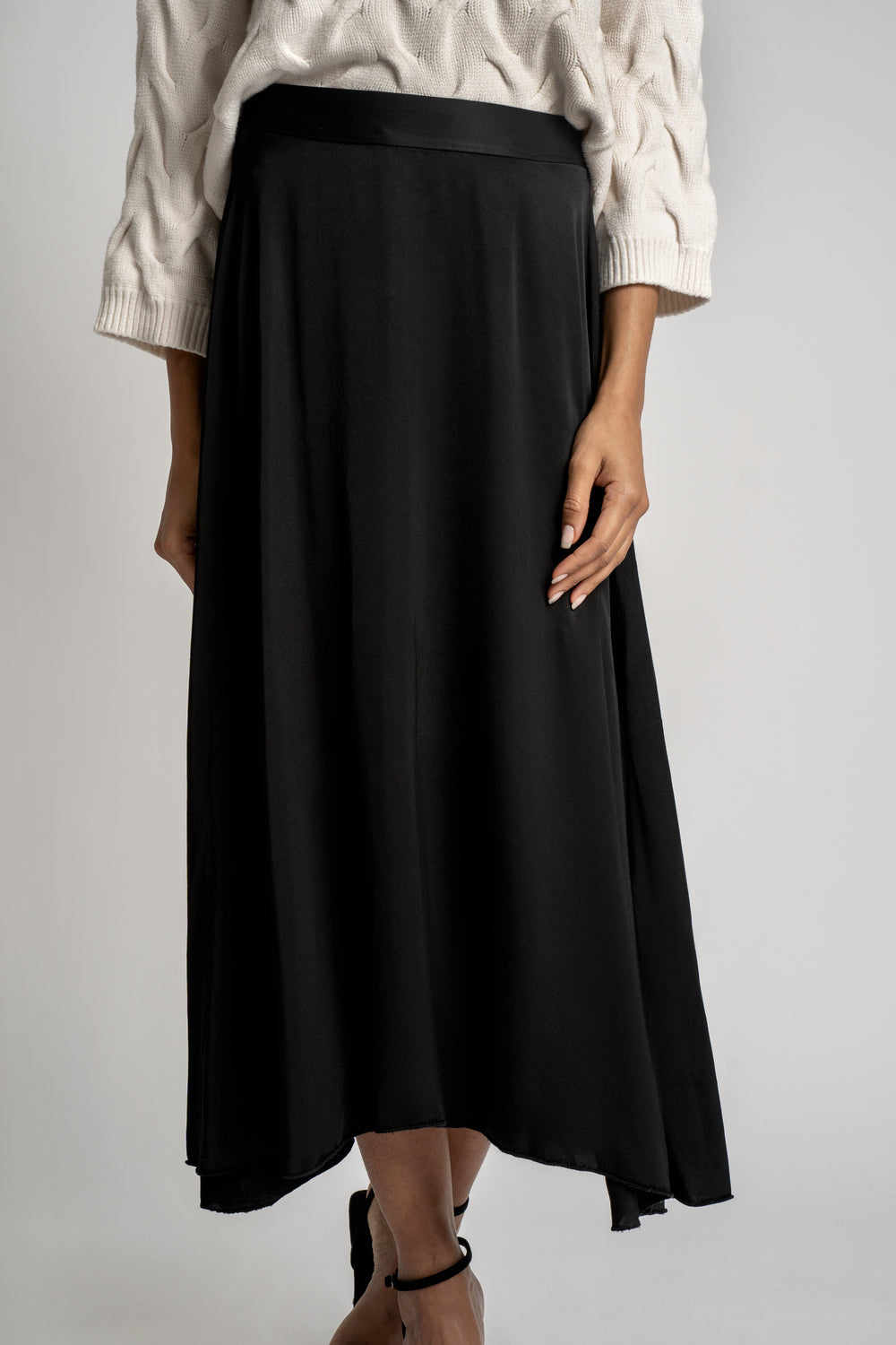 Adoptez une élégance intemporelle avec notre jupe façon satin ! Disponible en noir et champagne, cette jupe fluide et brillante séduit par sa matière satinée qui lui confère un aspect luxueux. Sa coupe gracieuse sublime votre silhouette et apporte une touche de sophistication à votre tenue. Parfaite pour les soirées chics ou les événements élégants, cette jupe en satin s'associe à merveille avec un haut raffiné et des accessoires délicats.