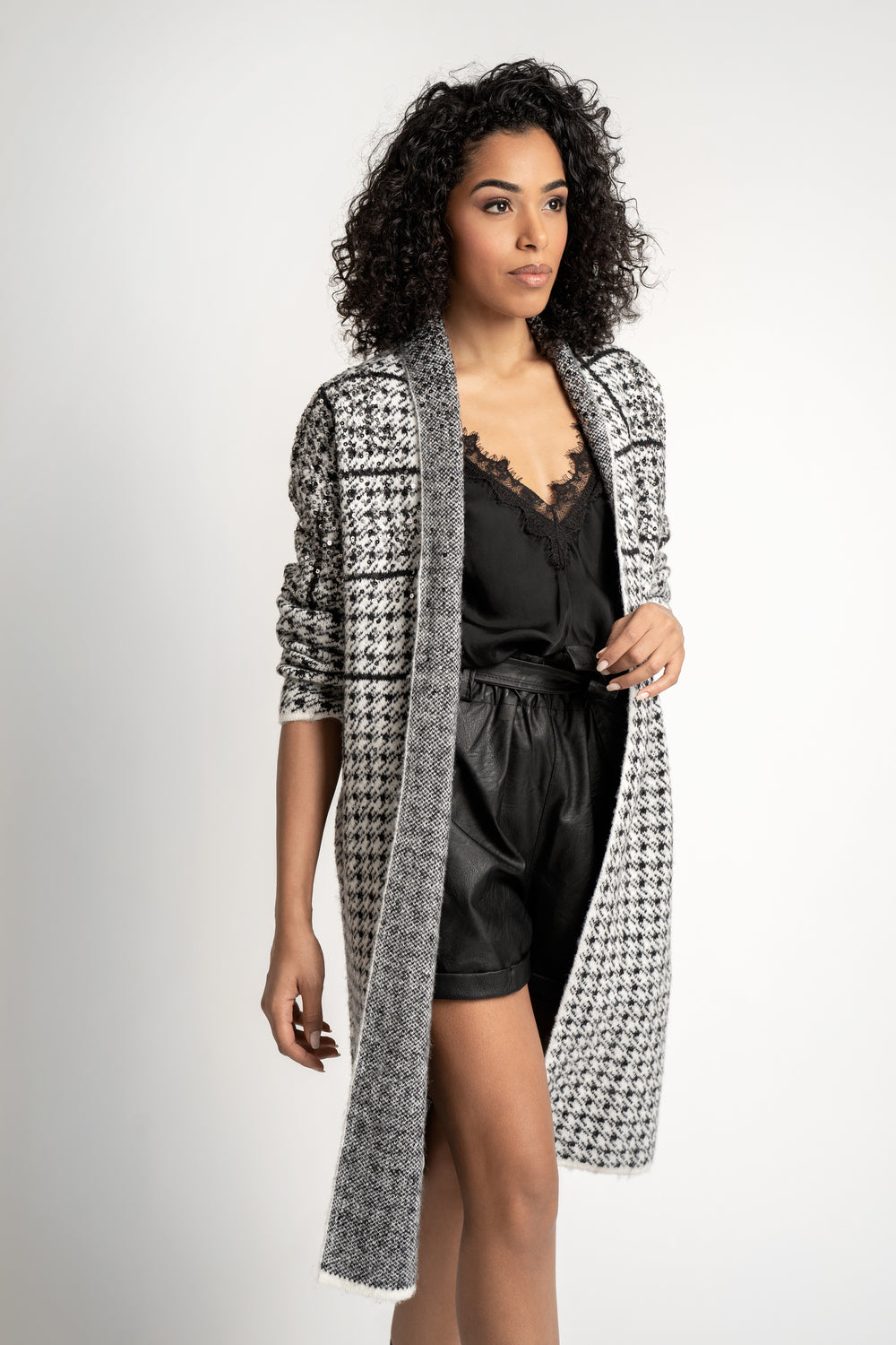 Adoptez un look classique et raffiné avec notre manteau long style tweed noir et blanc ! Ce manteau élégant se distingue par son motif tweed intemporel qui apporte une touche de sophistication à votre tenue. Parfait pour compléter un look chic ou décontracté, ce manteau en tweed est un incontournable pour une allure élégante et distinguée.