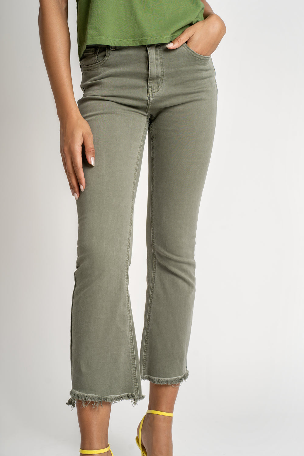 Affichez un look tendance avec notre pantalon 7/8 à finition frange ! Ce pantalon se caractérise par sa coupe 7/8 moderne et ses franges originales qui ajoutent une touche de dynamisme à votre tenue. Idéal pour un style chic et audacieux, ce pantalon 7/8 à franges est un choix parfait pour une allure à la fois élégante et décontractée.