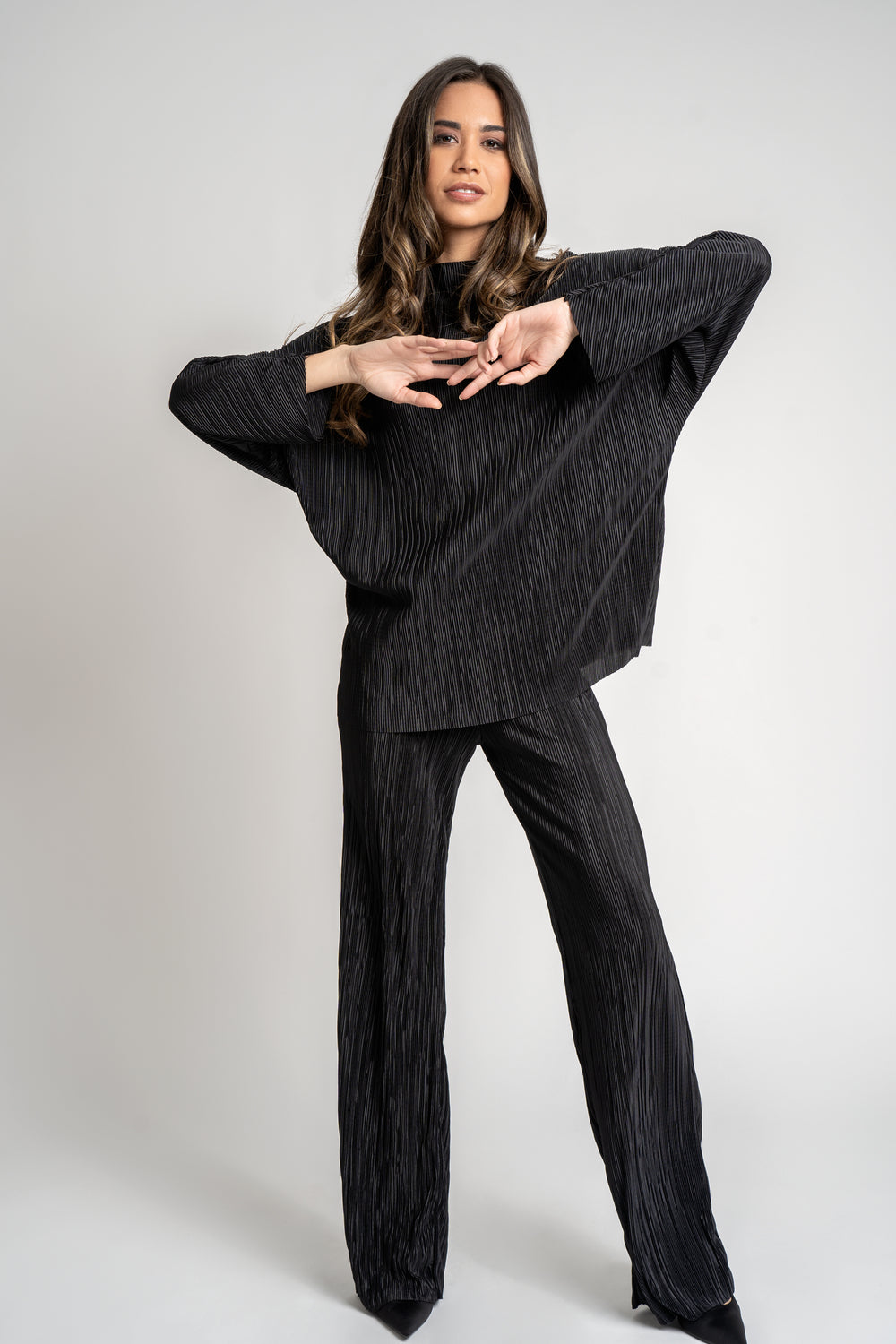 Adoptez une allure élégante avec notre top plissé à manches longues en noir ! Ce top se distingue par son plissage délicat qui ajoute une touche de sophistication à votre tenue. Un choix raffiné pour un style chic et intemporel.