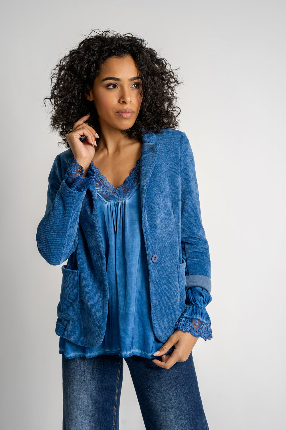 Adoptez un style douillet et élégant avec notre veste en velours ! Disponible en bleu, camel, rose pâle, écru et noir, cette veste se caractérise par sa matière veloutée et ses deux poches plaquées pratiques. Un choix raffiné pour une allure confortable et chic en toute occasion.